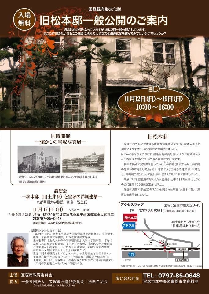 ◇旧松本邸:宝塚市桜ケ丘3-45 電話 0797-86-8251(12~19日10時~16時まで可能)