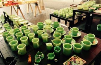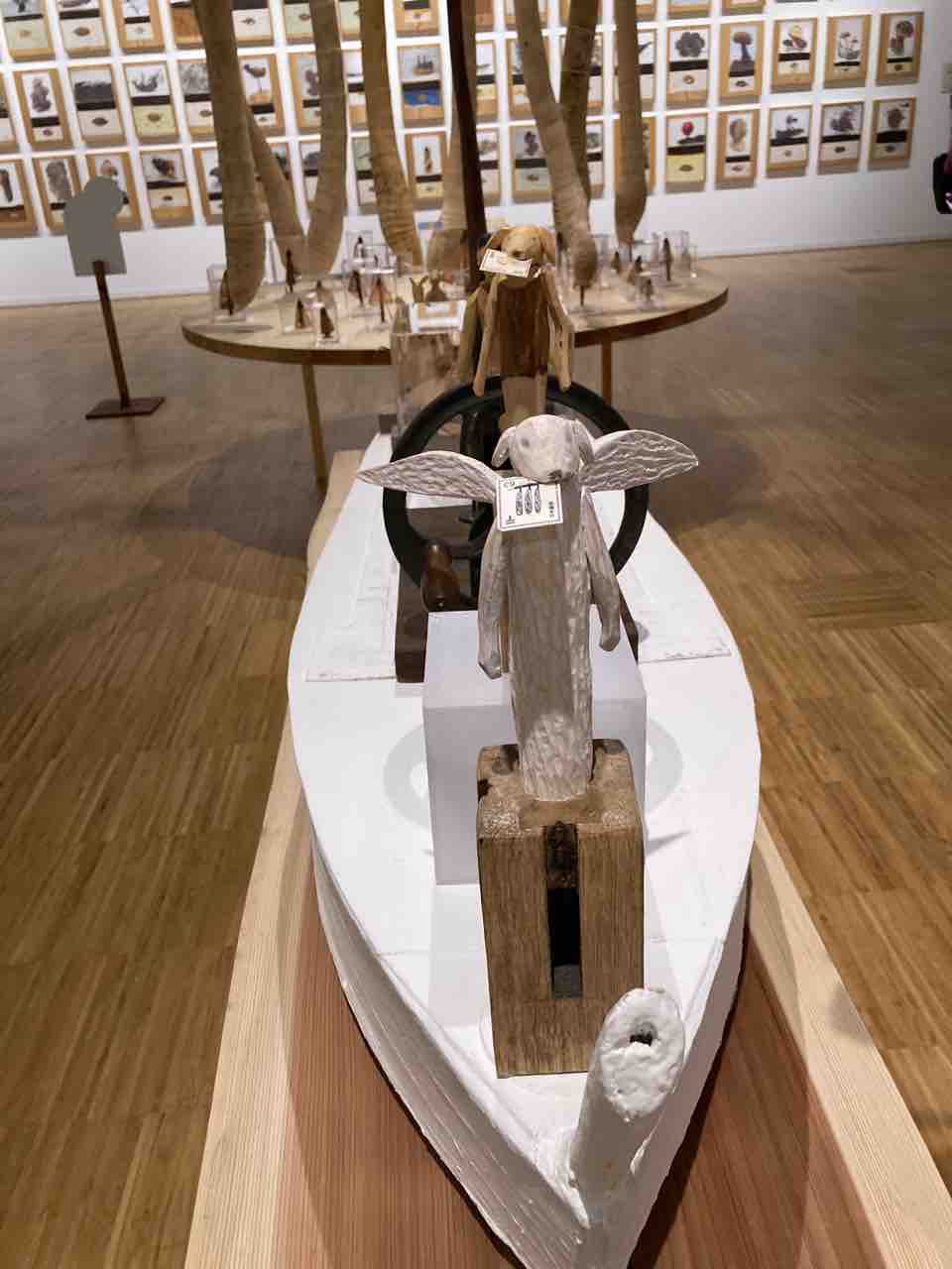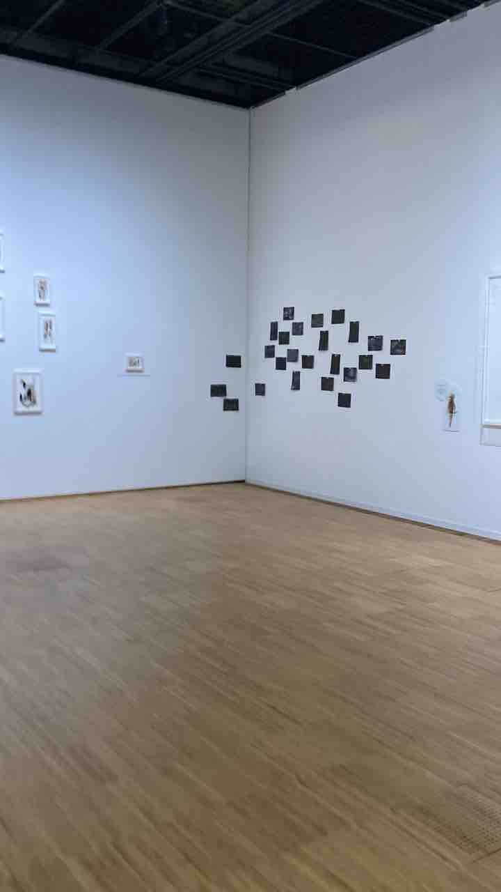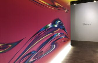こちらは出口です。あれ?来館者の作品が、展覧会場まで侵入しています。