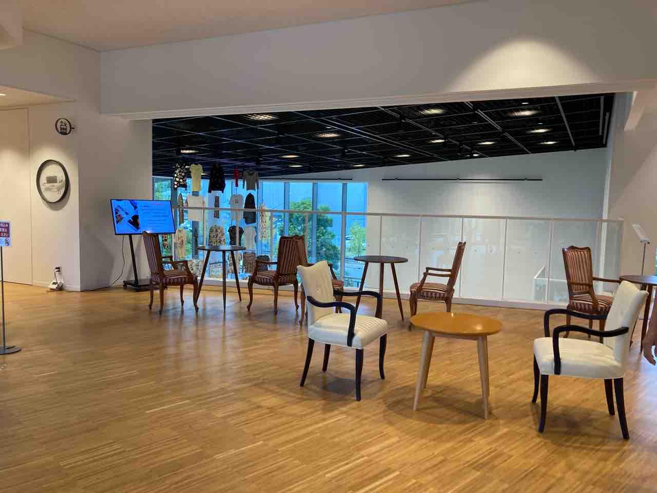 階段を上がると、広いサロンのようなスペースあります。以前はショップがここにあったのですが、今年の春から1階の入り口近くに移動しました。