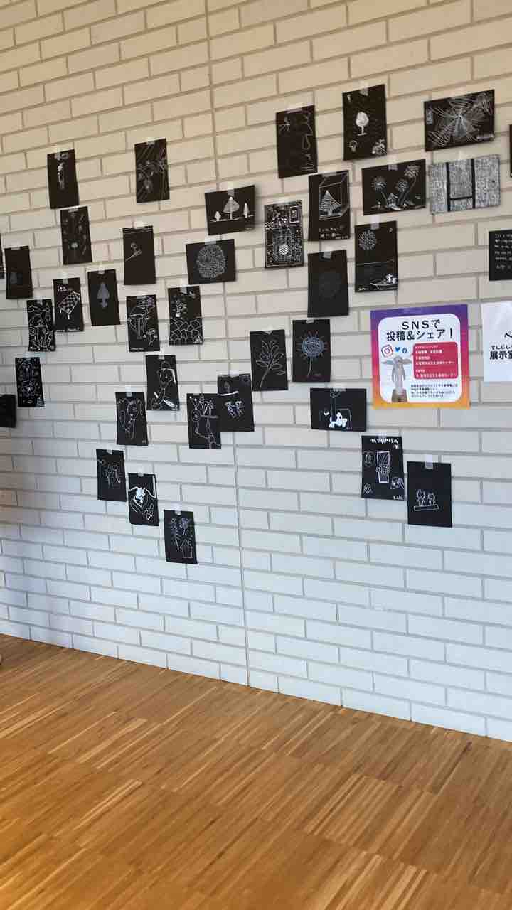 出口を出ると、ワークショップコーナーがありました。黒い紙と白インクのペンが用意してあり、展示で出会った作品について、自由に感じたことを描いて表現できます。