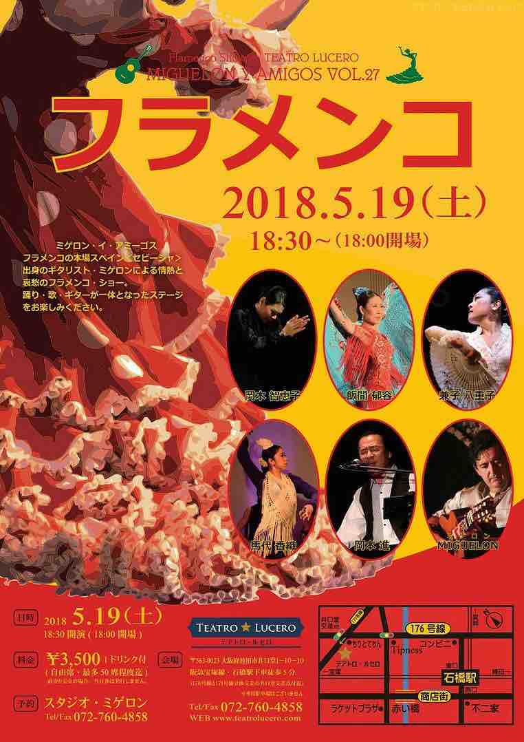 フラメンコ公演情報 ミゲロン・イ・アミーゴス 5/19(土)  阪急石橋駅5分