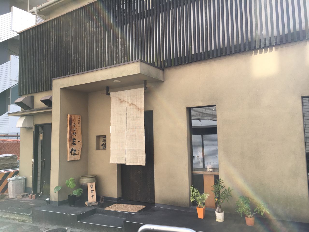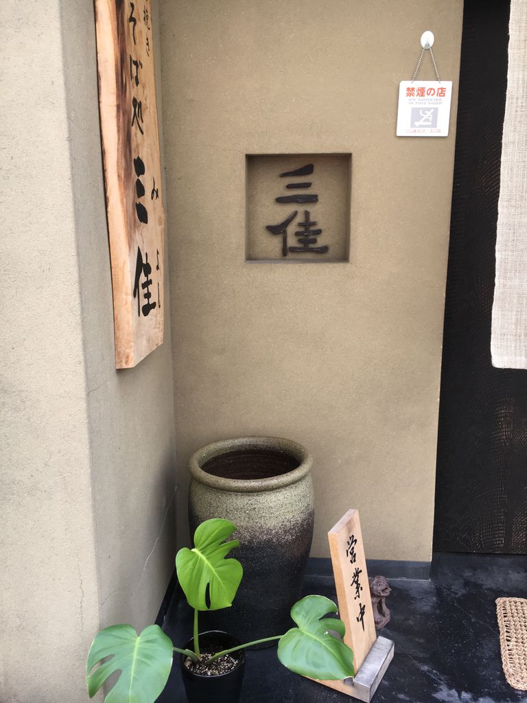 阪急逆瀬川駅徒歩1分、アピア裏の路地を入ると目にする事ができる そば処「三佳(みよし)」。前から気になっていたこのお店。お昼どきは満席の事が多く、なかなか機会がなかったが、ようやくタイミングよく入れたのでレポートする。