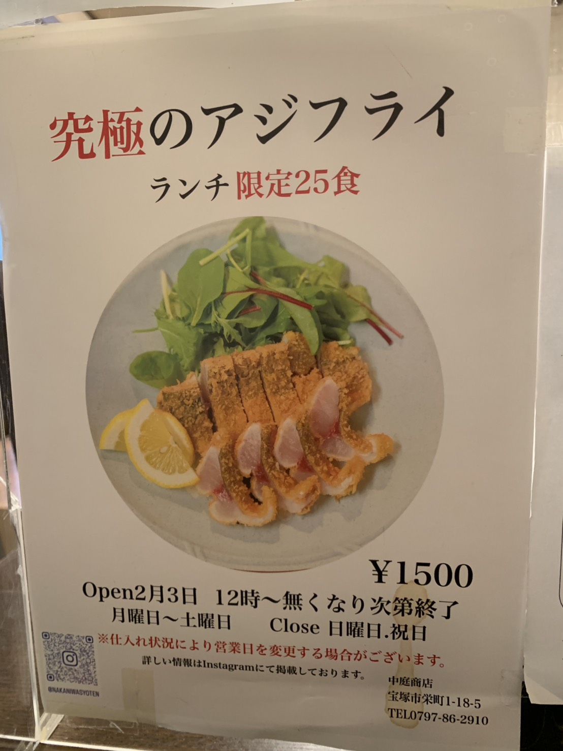 老舗魚屋「中庭商店」で味わう究極のアジフライ!(宝塚花のみち近く)
