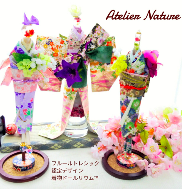【着物ドールリウム™講座】(本部:横浜)は「 着物ドール」と「ハーバリウム」がコラボレーションした着物ドールリウムの講座。 日本の美しい伝統文化を発信したいという思いからきており、花文化活動としても展開してきている。 認定講座は、今年秋頃から拡がりはじめ、宝塚では、宝塚フラワーサロン「アトリエ・ナチュール」 で関西初のの認定講座として受講できるそうだ。