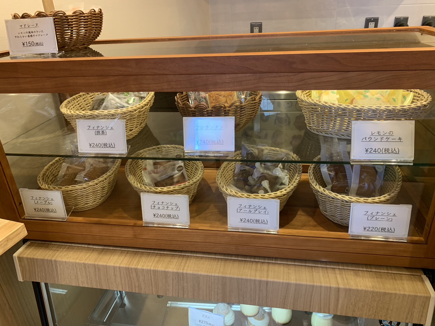 フィナンシェやパウンドケーキが美しく並んでいます。どれも美味しそうで目移りしてしまいます。