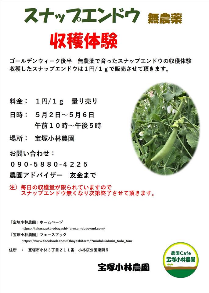 ※毎日の収穫量が限らられている為、スナップエンドウがなくなり次第終了。