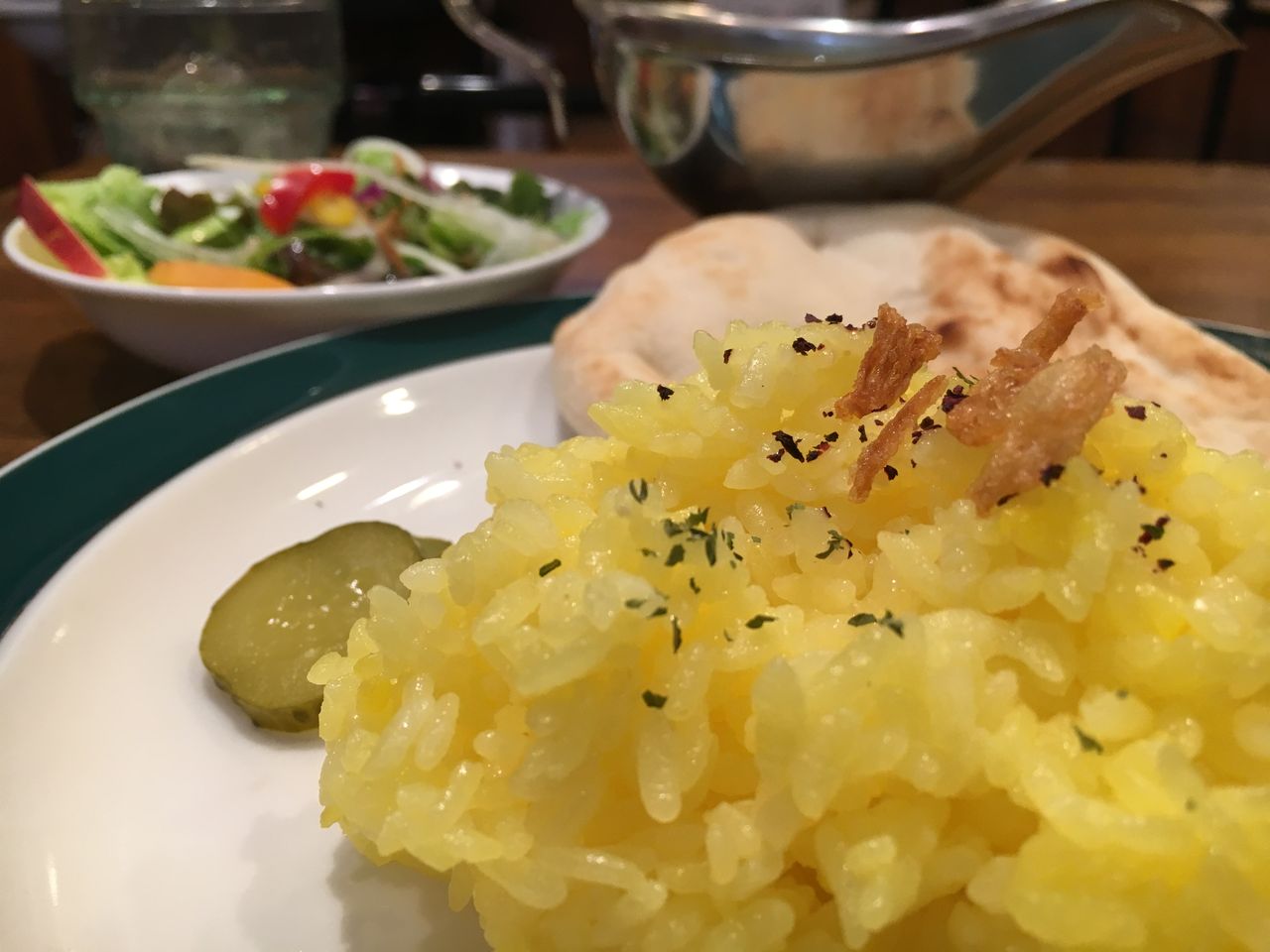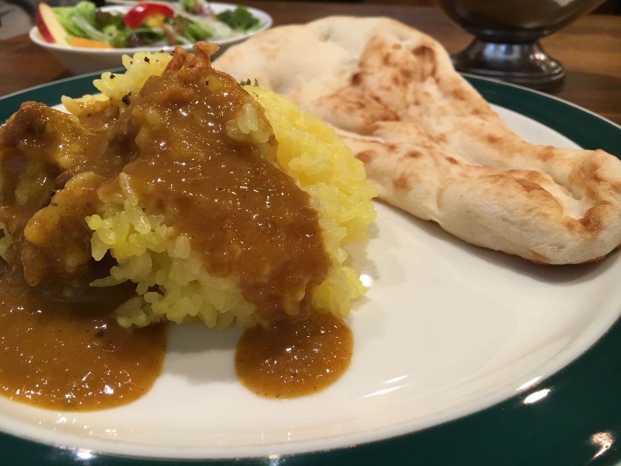 ルーをかけて食べるとライスとカレーが絶妙な具合で絡み合い、それぞれの味を引き出しているようだ。サフランライスだけでなく、ナンも本格的で、ちぎってルーにつけて食べているとほんのり楽しくなる。