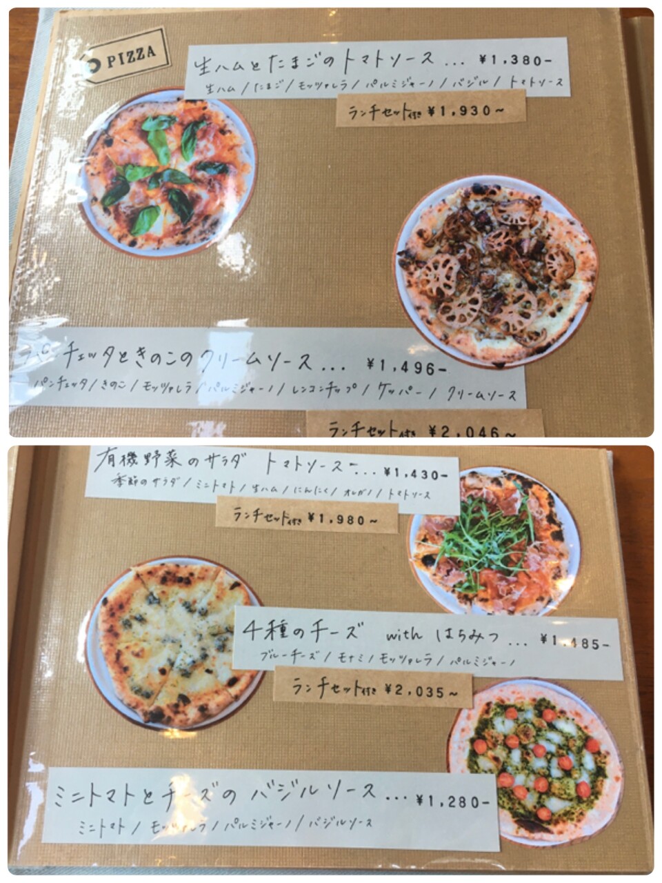 メニューはピザとパスタ、その他アラカルトメニューもあります。