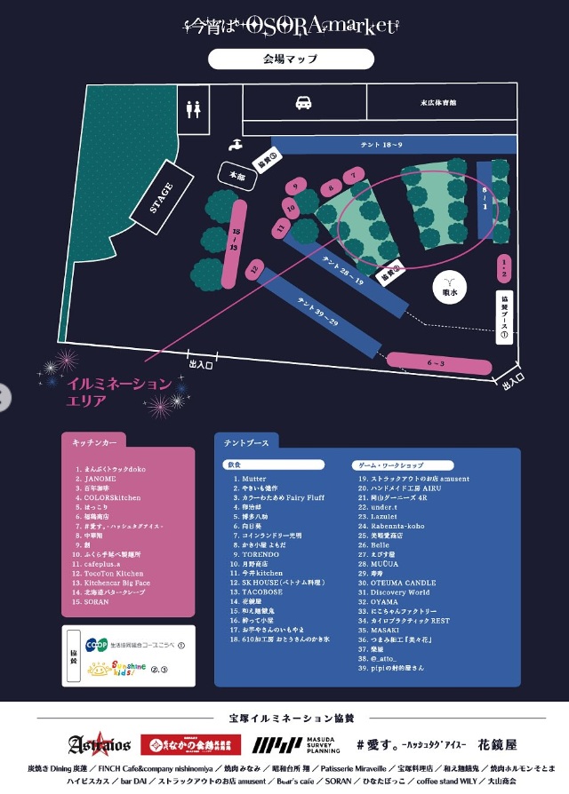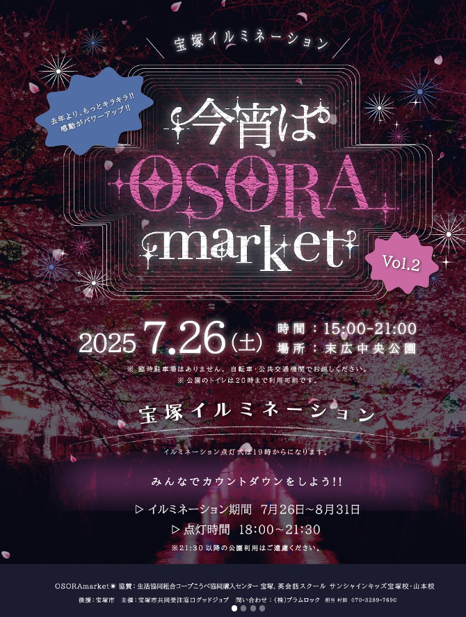 OSORAmarket 協賛:生活協同組合コープこうべ協同購入センター 宝塚、英会話スクール サンシャインキッズ宝塚校・山本校