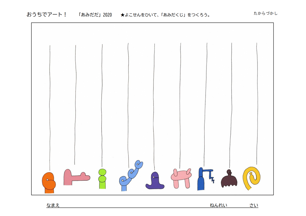 「チャレンジ!」コーナーでは、元永定正(もとなが さだまさ)さんの作品をもとに 描いたり、タイトルを考えたり、 子どもたちの想像力と創造力を育むワークシート が用意されている。さらに各々作られた作品ワークシートは、市ホームページで紹介してもらえる。(※応募および公開は希望者のみ)