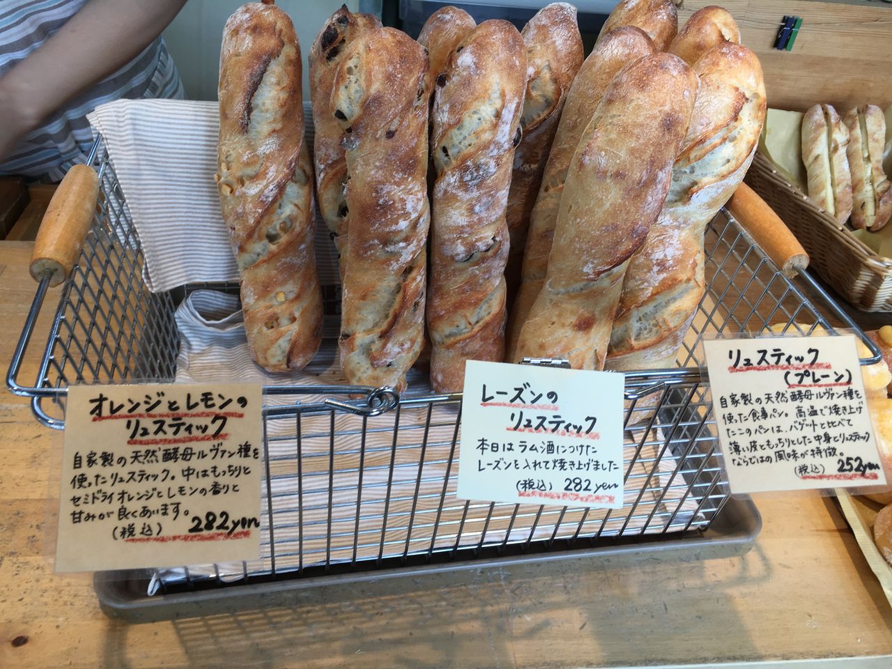 焼き上げる時間帯も異なり「角食プルマン9:00〜、イギリス山食11:00〜、各リュスティック10:30〜、バゲット12:00〜」という事で、焼き立てのパンの時刻が知らされているので有り難い。直後に食べるとさぞ美味しいのだろう。