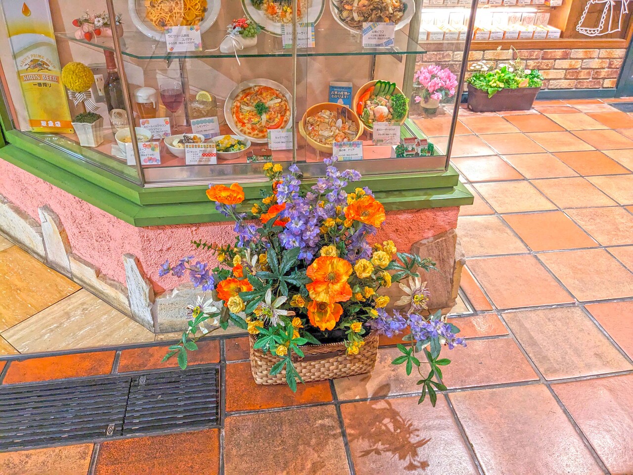 この日はメニューサンプルの下には大きなお花が飾られていました。