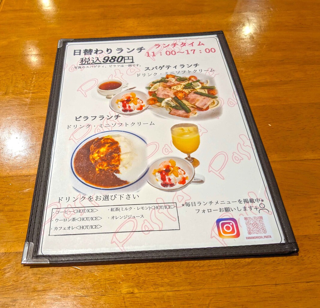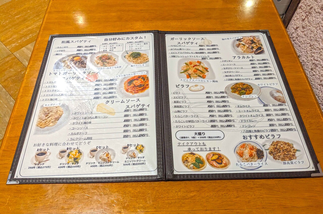 私がお店に入った時間帯はディナータイムだったのですが、ランチタイムに入店するとスパゲティーランチ、ピラフランチが税込み980円でソフトドリンクとミニソフトクリーム付きで楽しめます。