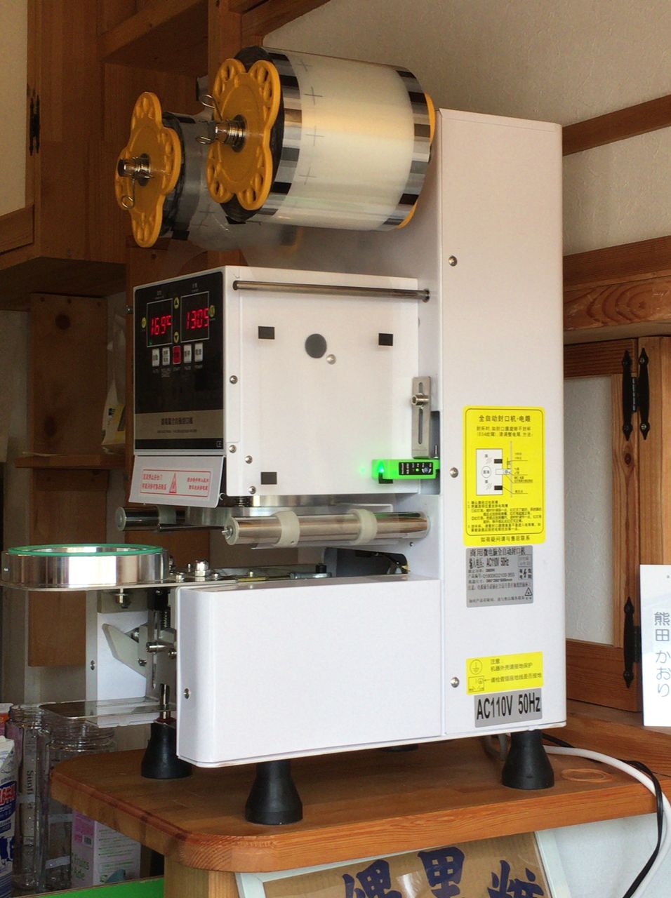 持ち帰りの方に嬉しい溢れる心配がないシーリングは、この機械が実現してくれる。