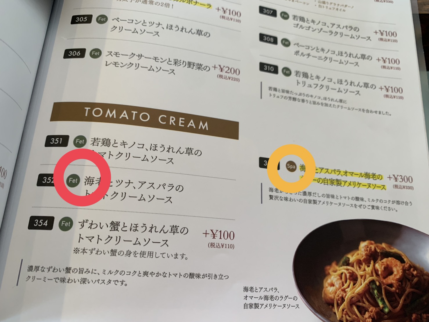「海老とツナ、アスパラのトマトクリームソース」を注文しました。