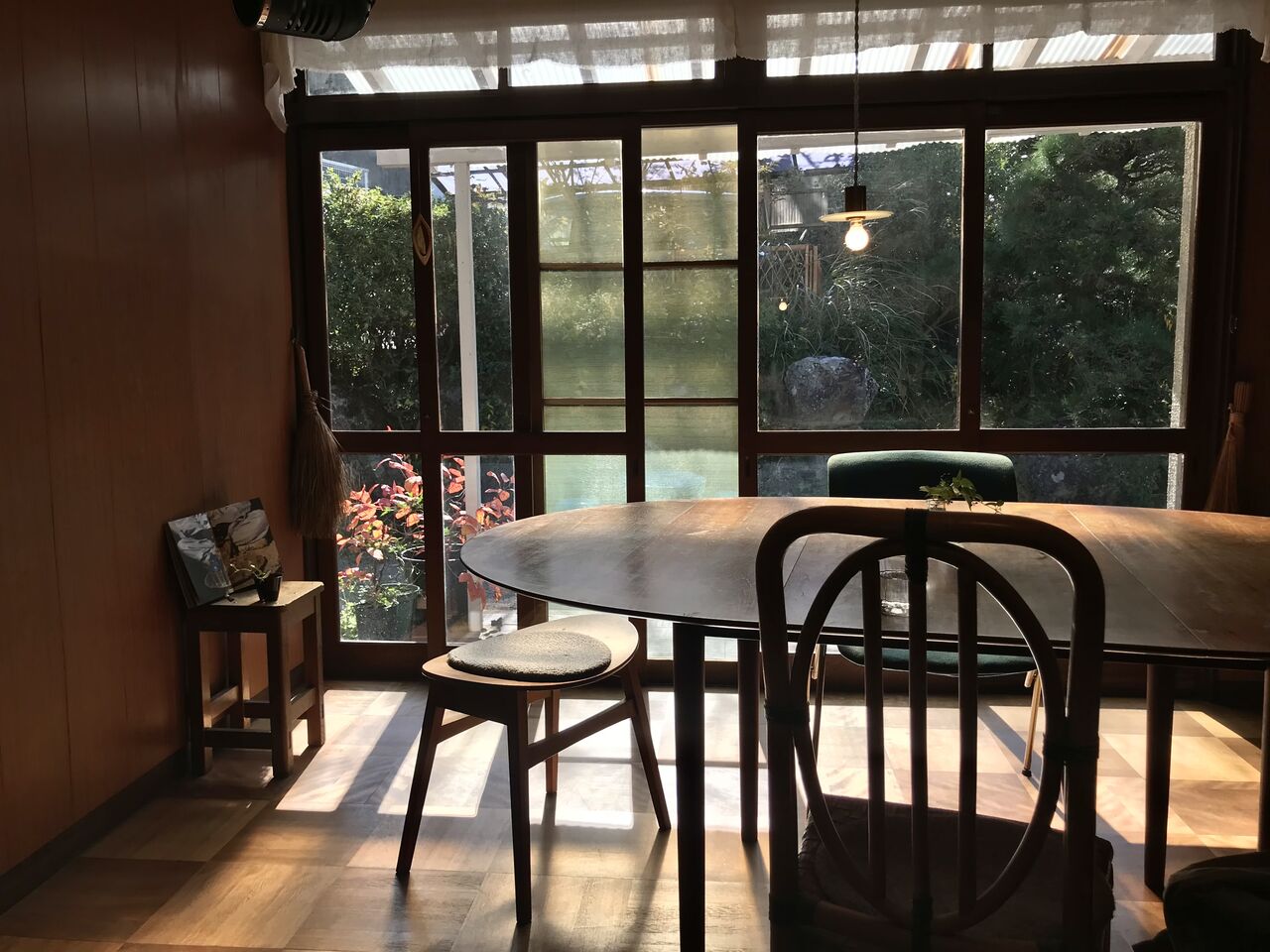 民家を改装された家庭的なお店。お庭を通り靴を履いたまま店内に入ります。