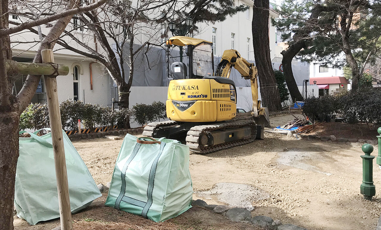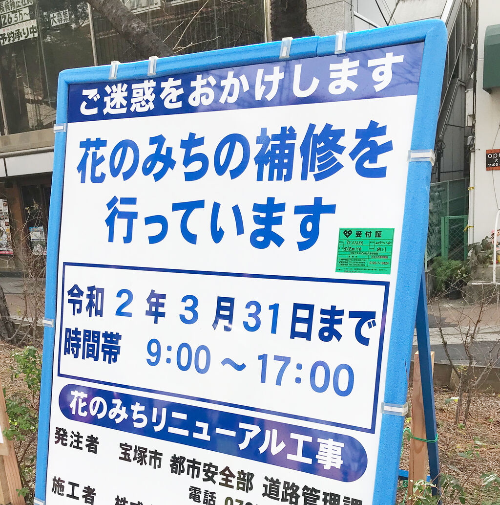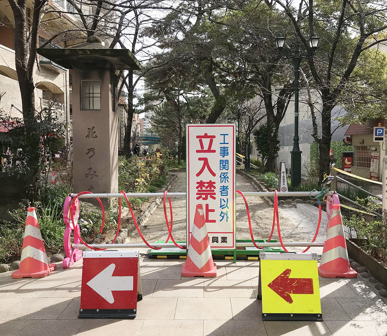 花のみちを散歩していると、リニューアル工事が始まっていました。