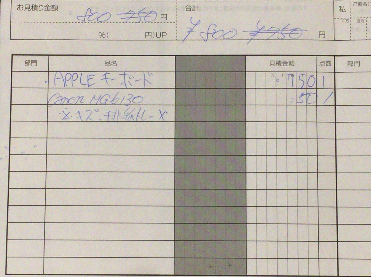 2019年もあと僅か。年末に向け年賀状シーズンにプリンターを新調した。古いながらもまだ動くCANONのプリンターは捨てるよりも、買取専門のお店に持っていくほうが良いのでは?と頭に浮かぶ。廃棄するだけでも料金を取られそうな捨てる予定だった他のもの、古いデスクトップPC、USBドライブ、スキャナー、キーボードなどを一緒に持って行こうと断捨離を決行。数があれば少しでも高値になるかも。でも100円位がいいとこかなという感覚値を持っていた。