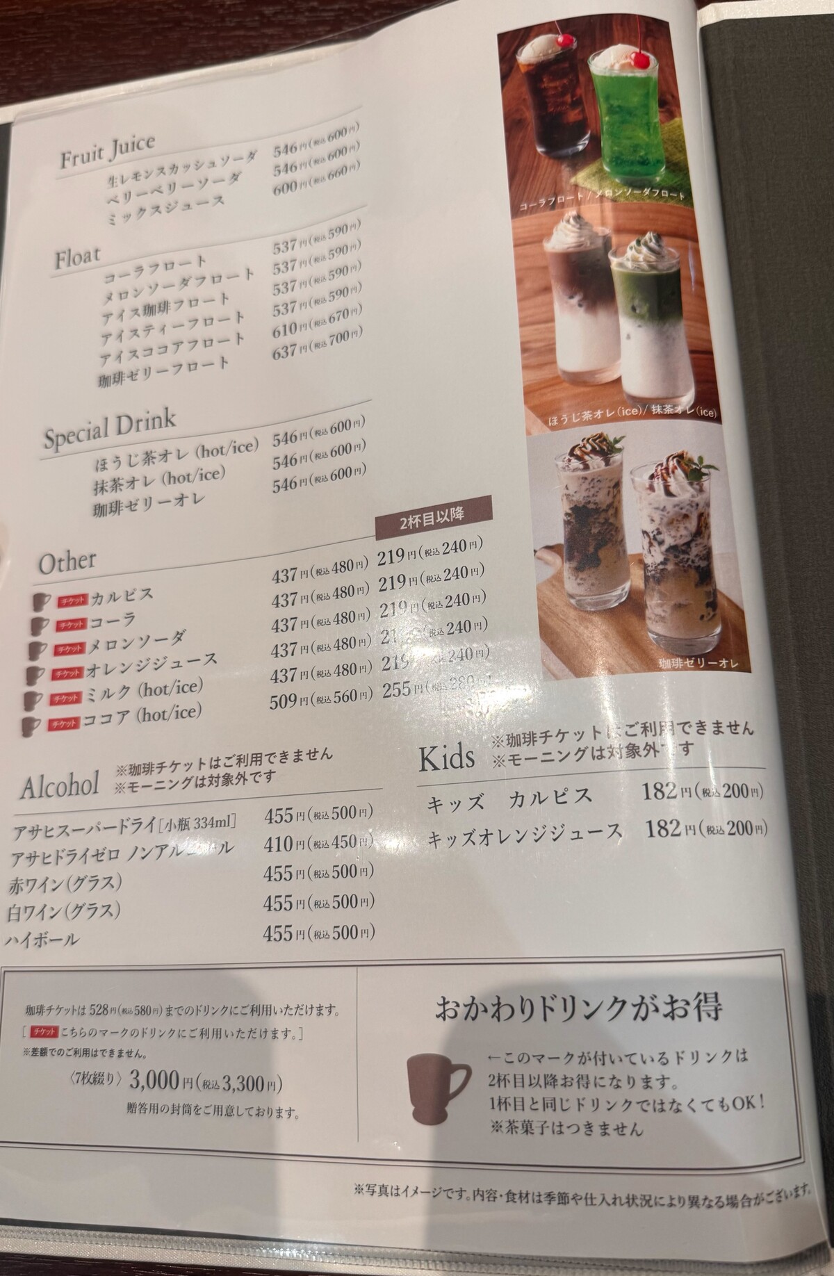 さらに、鉄板ナポリタンやオムライスといった食事メニューも充実しており、カフェタイムだけでなくランチやディナーにも利用できます。