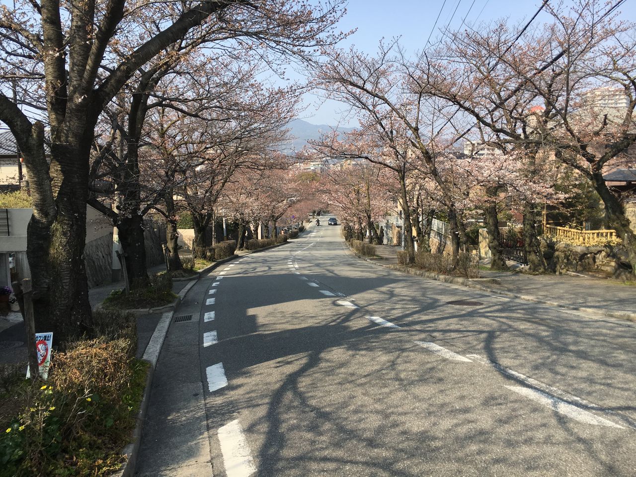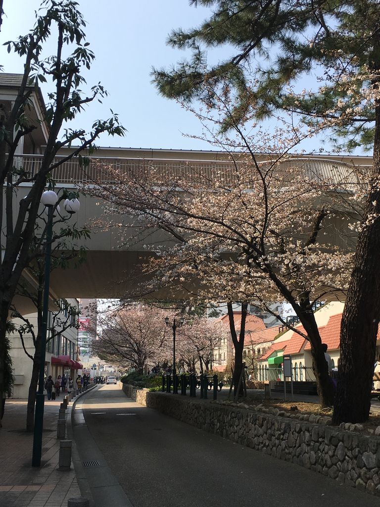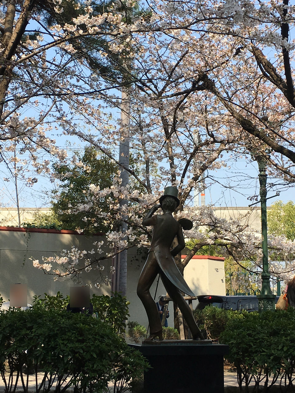 トコロ変わって、宝塚大歌劇場前、花の道。まだまだ、開花〜三分咲きというところです。