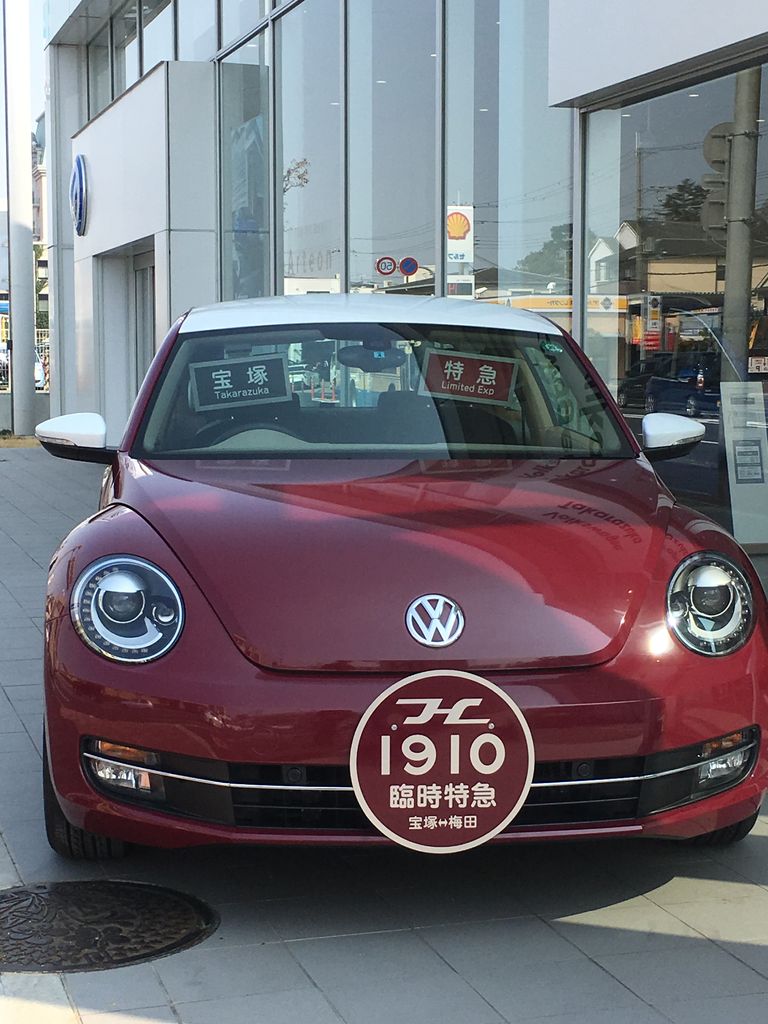 阪急電鉄とフォルクスワーゲンのコラボ企画の展示品。臨時特急「宝塚行き」。