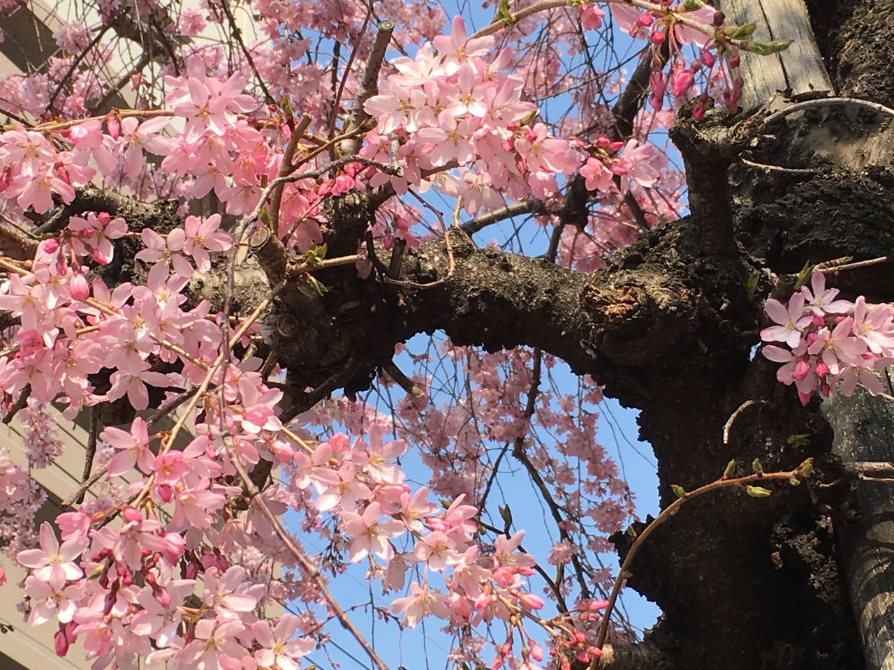 ところが、宝塚南口のいかり宝塚店前の枝垂桜がかなりいい色にー。
