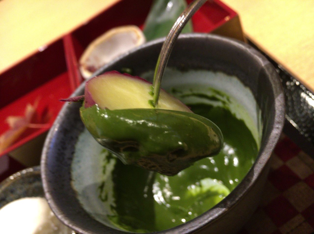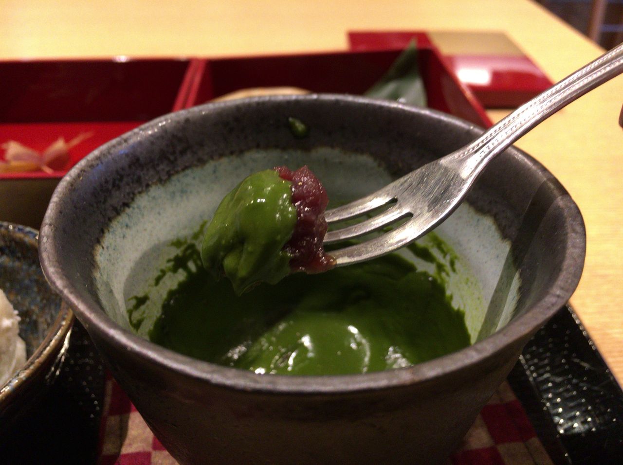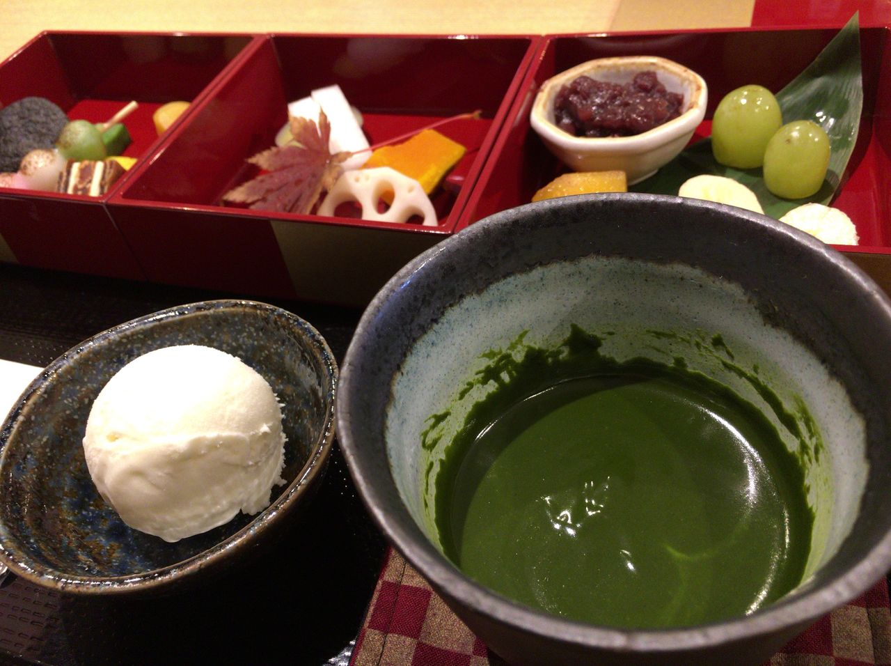 最後は、バニラアイス。フォンデュを食べた後、余ったお茶のソースをつけて食べても楽しむ事ができる。