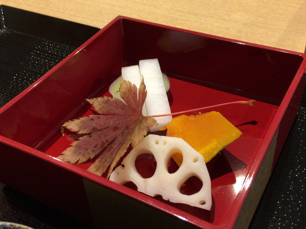 次に、中段は「野菜の段」。生野菜や、蒸し野菜など、食感がいろいろで、シャッキっと水々しい、以外な発見がある。さつまいも、かぼちゃ、大根、れんこん。