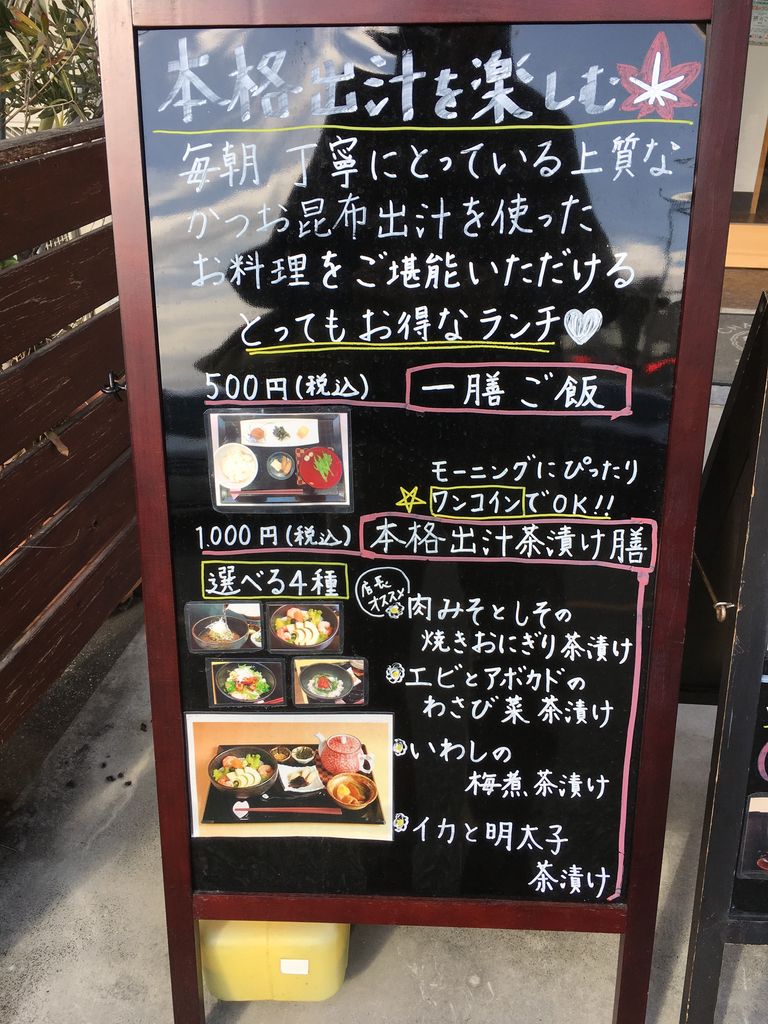 こちらは個人的に一押しのオススメの品。イワシの旨みに大粒で高級はちみつ梅が加わり、新鮮な水菜と白ネギがぴったり合う。まかない料理→限定メニュー→定番メニューと出世魚のように駆け上り、今では人気メニューの座を獲得。こちらもこのまま食べても良し、出汁をかけてもよし。イワシと梅が出汁に染み込みご飯がいっそう美味しく頂ける。