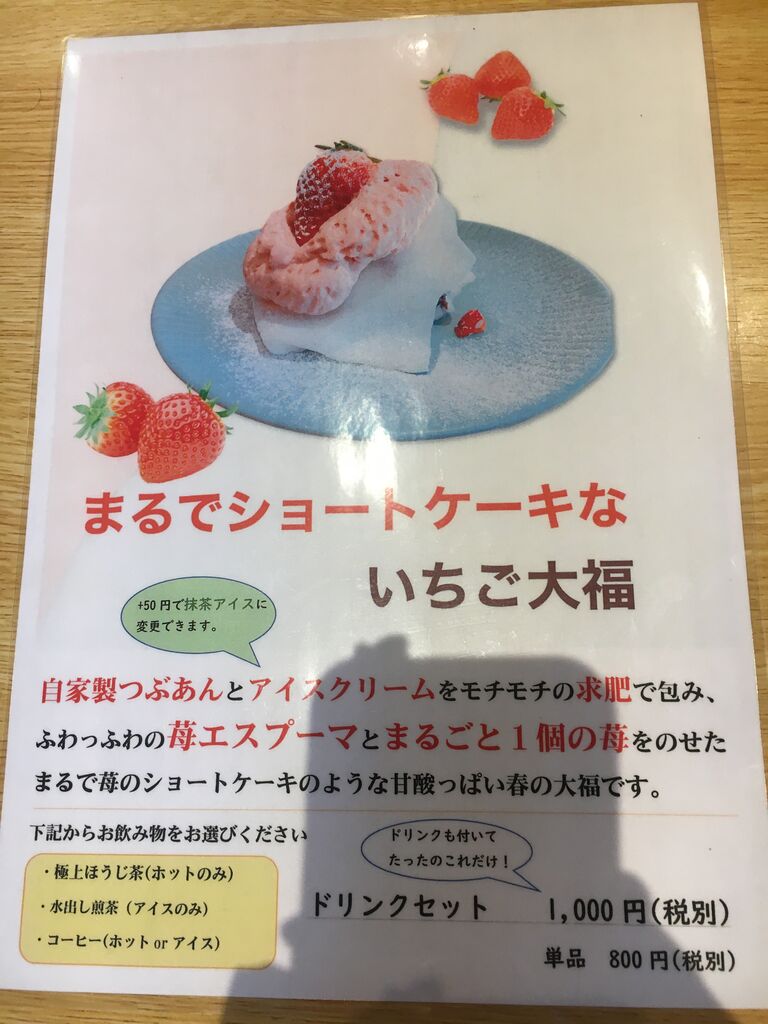 いちご大福とバニラアイス&エスプーマの組み合わせが抜群です。間違いないおいしさ!求肥がたっぷり使われているので、見た目よりボリュームがあり、満足感もしっかりあります。