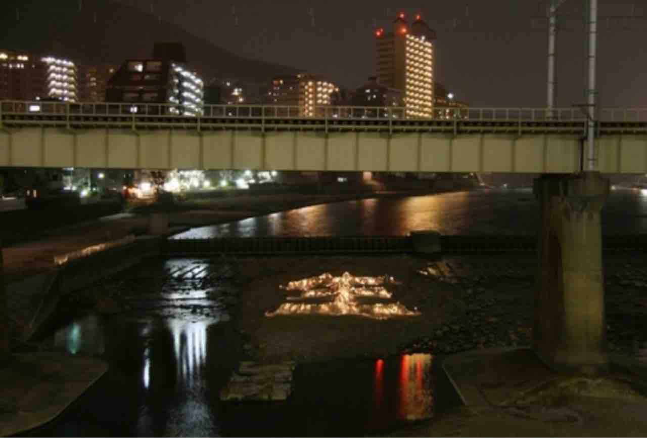 *8代目「生」石積みライトアップは宝塚大橋からご覧ください。