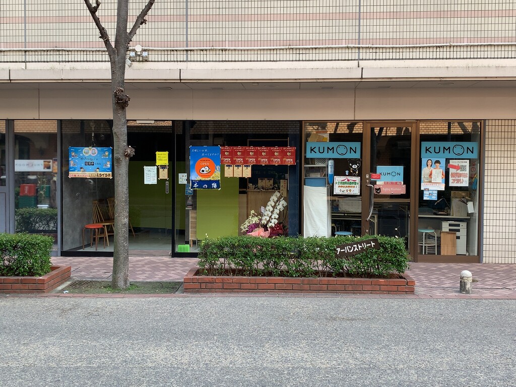 店舗の表側の全体はこんな感じです。(KUMONの左側です。)