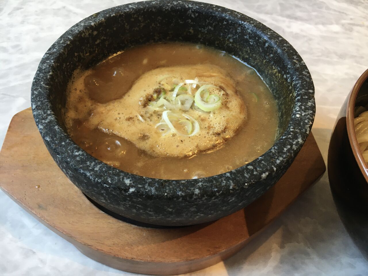 冷めにくい石焼の器に入ったつけ汁が、ぶくぶくと沸騰した、あっつあつの状態でやってきました。
