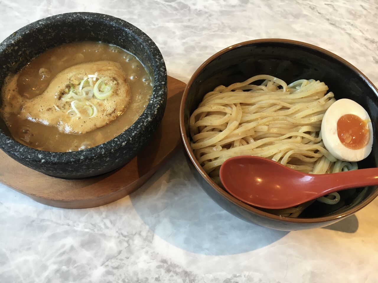 しばらくして、注文したつけ麺が来ると、まず音に驚きます!