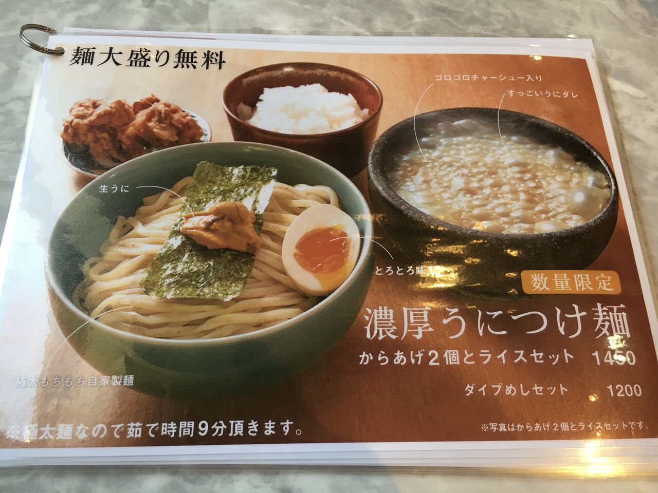 うに好きの人には、濃厚うにつけ麺も良さそうです。