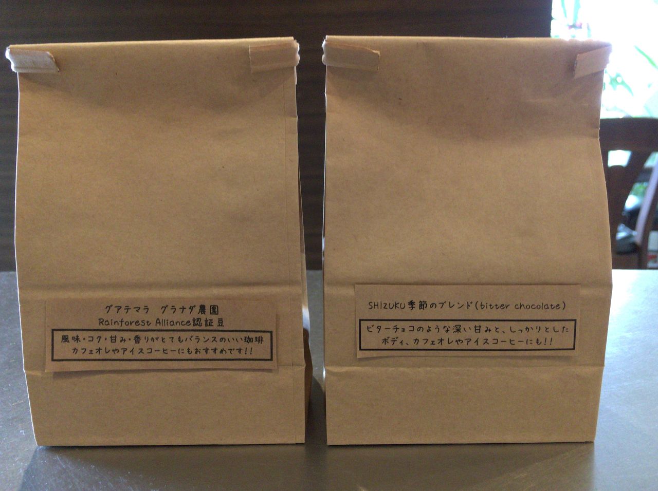 今回購入したグァテマラグラナダ農園とSHIZUKU季節のブレンド。