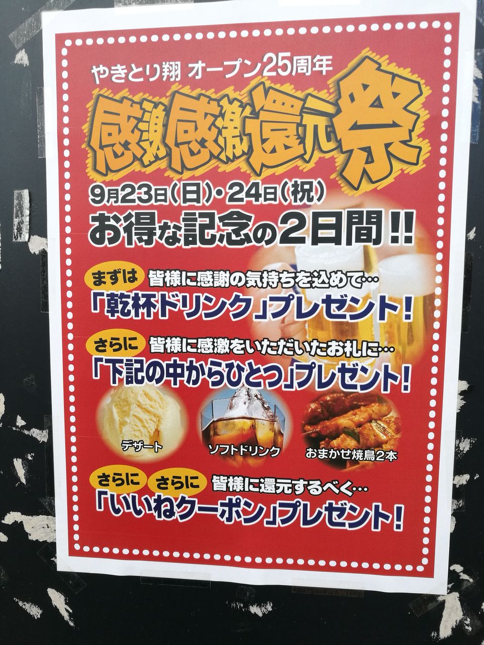 宝塚市役所の交差点にある「やきとり翔」は、オープン25周年だそうです。