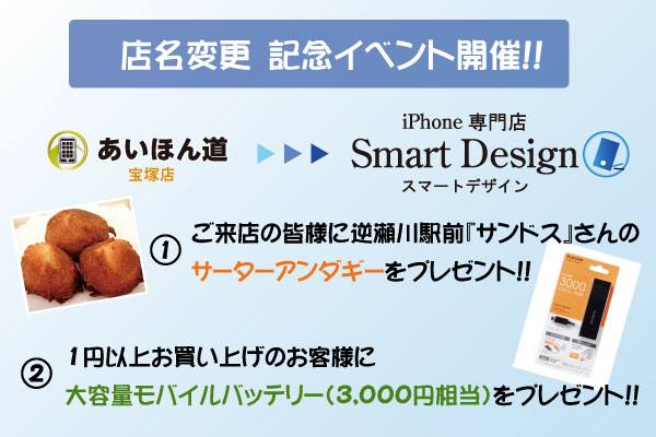 iPhoneの修理専門店の「あいほん道 宝塚店」のお店の名前が変更! 新店舗名は 「スマートデザイン」(SmartDesign) 記念品プレゼント!