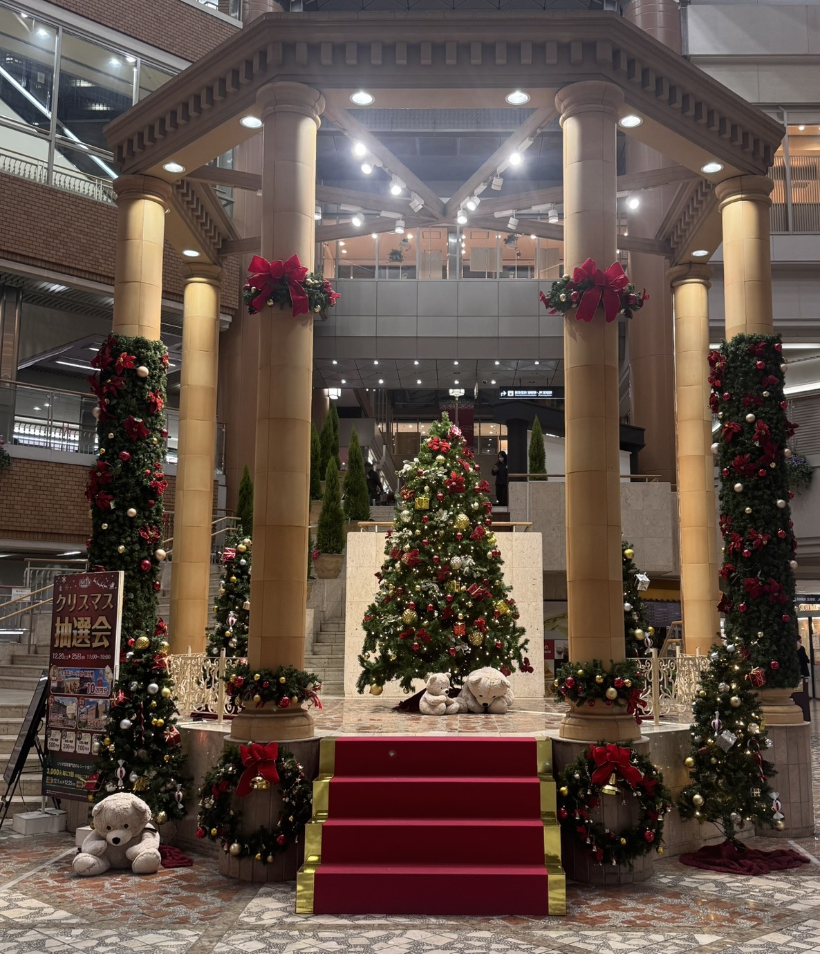 館内を歩くと、赤いリボンやガーランド、柱を彩るリース装飾が目に入り、自然と足取りが軽くなる季節。