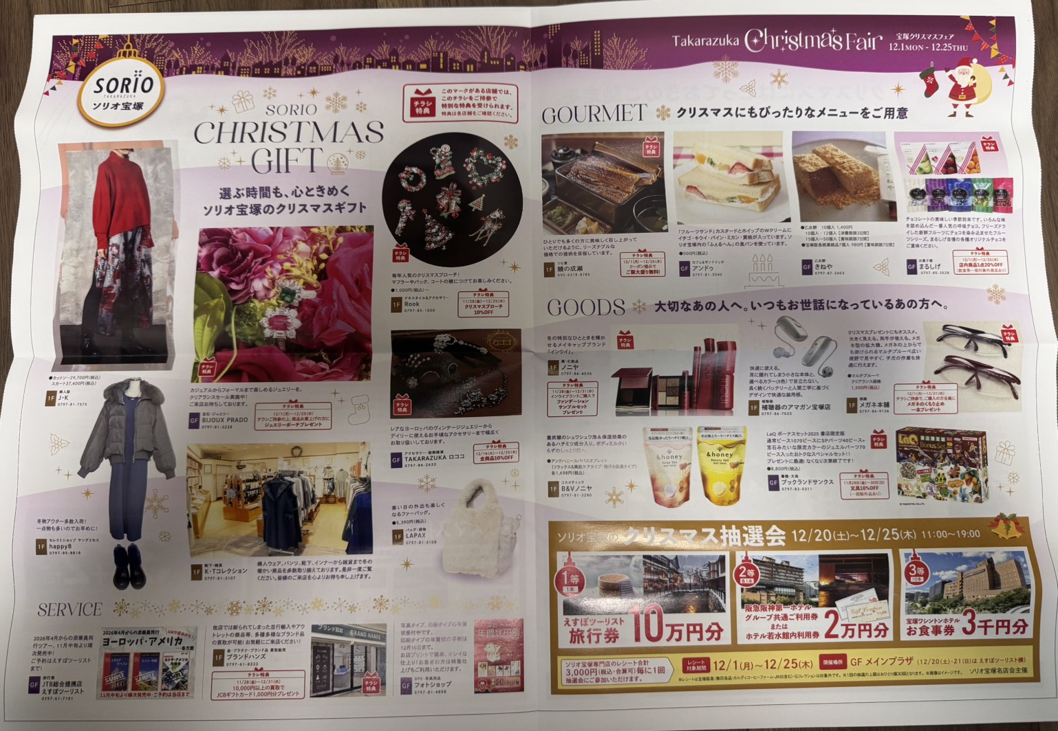 ソリオ宝塚専門店のレシート合計3,000円ごとに1回、抽選に参加できます。レシートは合算OK。