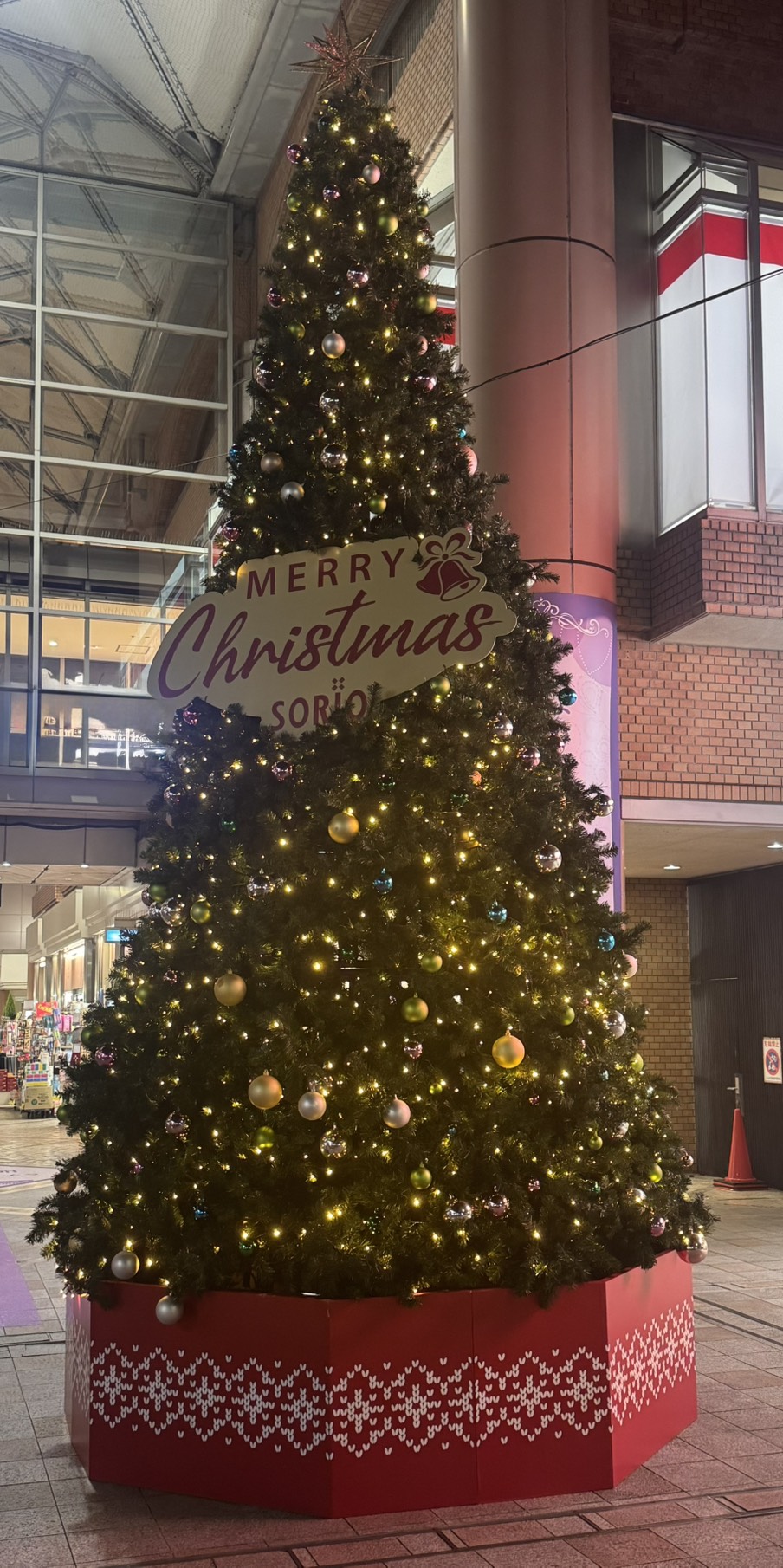 通路には「Merry Christmas SORIO」のバナーも掲げられていて、いつもの買い物が少しだけ特別な時間に変わります。