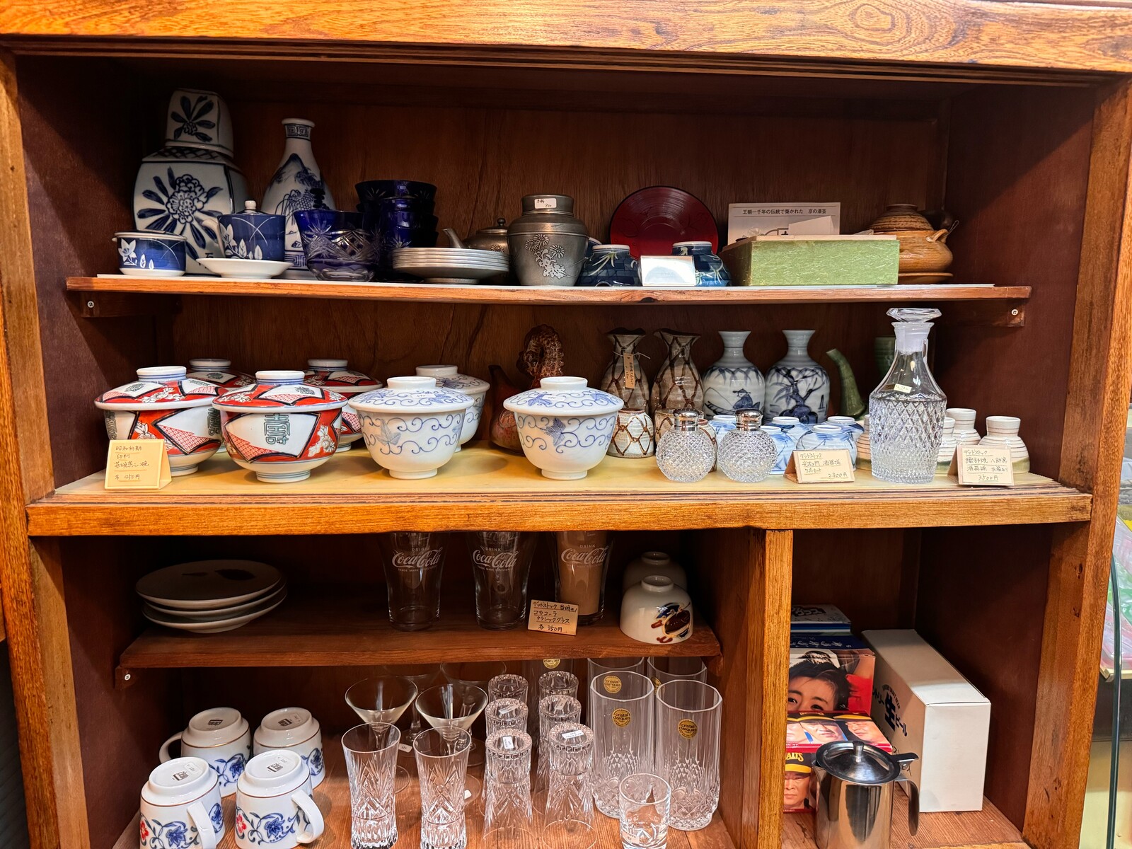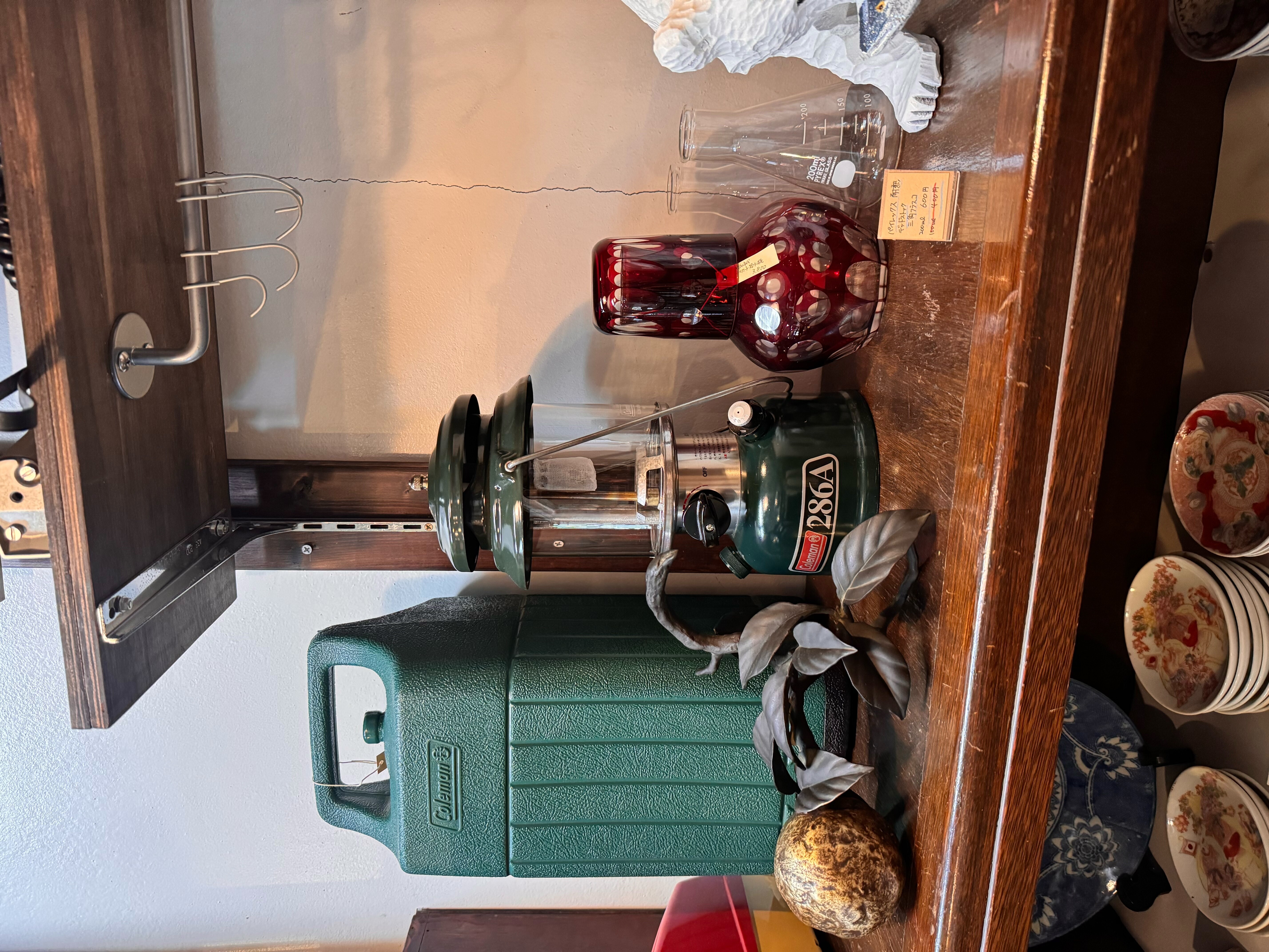 店内の厨房の横にはアンティーク雑貨が置かれており、どれも懐かしいものばかり。