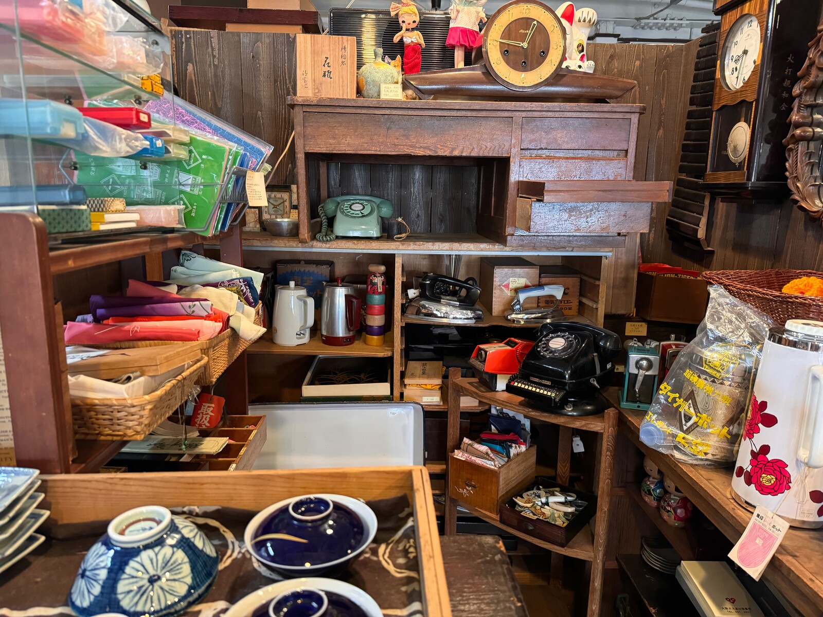 生産が中止された未使用のデッドストック商品を全国各地から仕入れているそうで、アンティーク雑貨は販売もされており、要望に応じて仕入れも行っているとのことです。