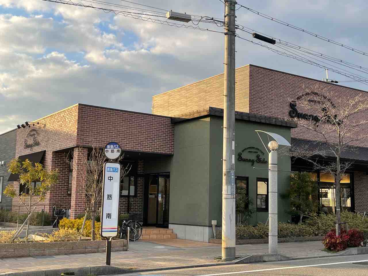 北隣はこちらも人気店、焼きたてのパンを店内で食べられるカフェ、サニーサイド、実はここに阪急バスのバス停があるんですね。バスで来ても便利なんです。(サニーサイド過去記事参照