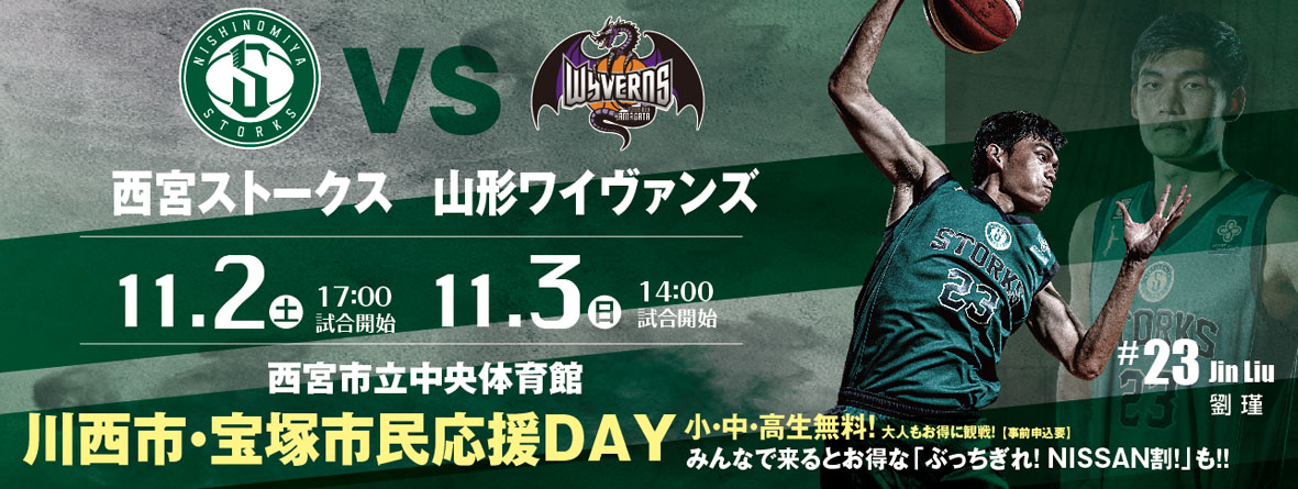 ◆11月2日(土) 西宮ストークス VS 山形ワイヴァンズ 17:00 TIP OFF
