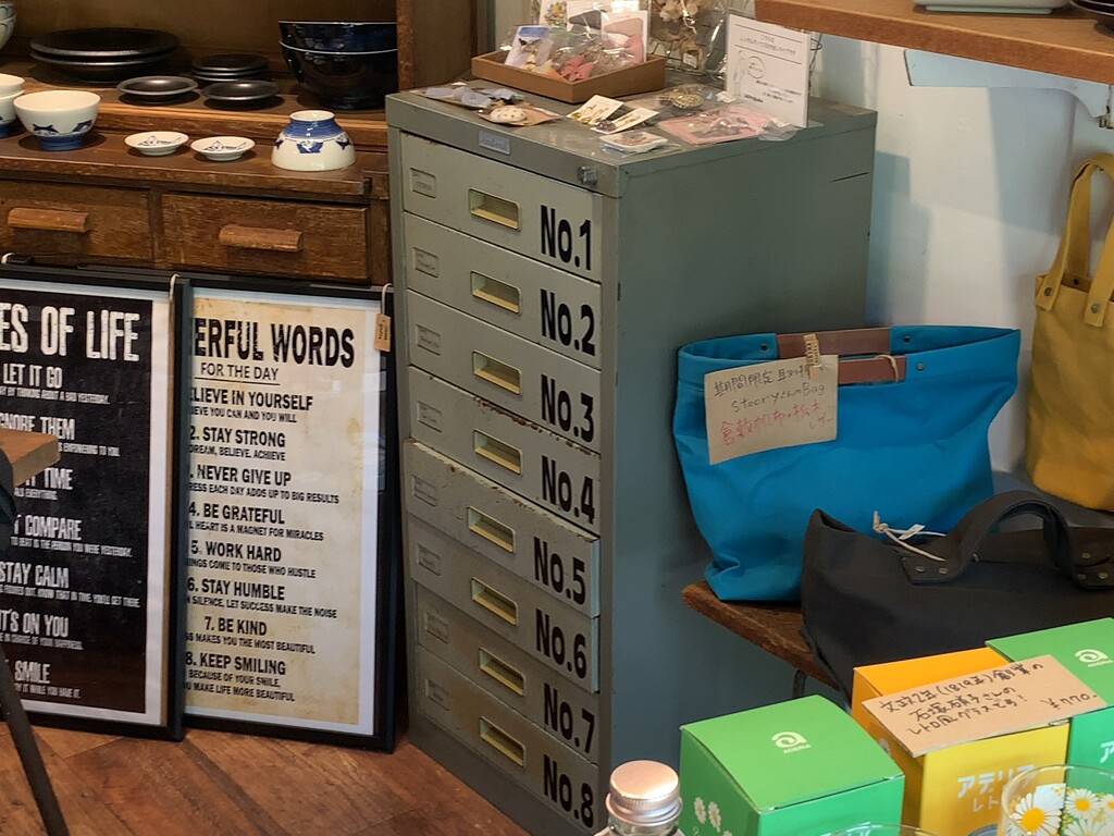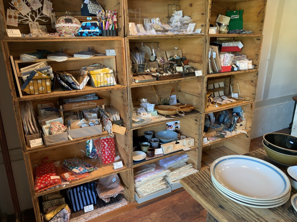 お店で提供されているものは、手作り作家さん達が作った小物、アクセサリー、食器などで、アンティーク的な古道具も取り扱っている。また、ハンドメイドでオリジナリティ溢れるアウトドア商品も販売されていて、キャンプで利用されるハンガーラックや焚き火台、テーブルなどもあり、サイズをオリジナルのモノにカスタム出来るそうだ。