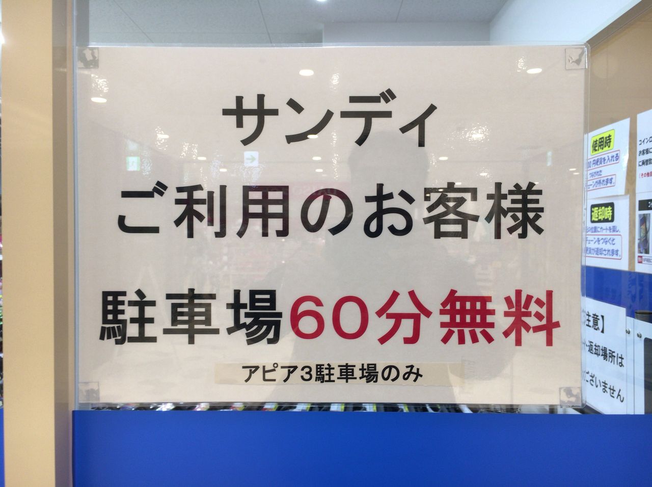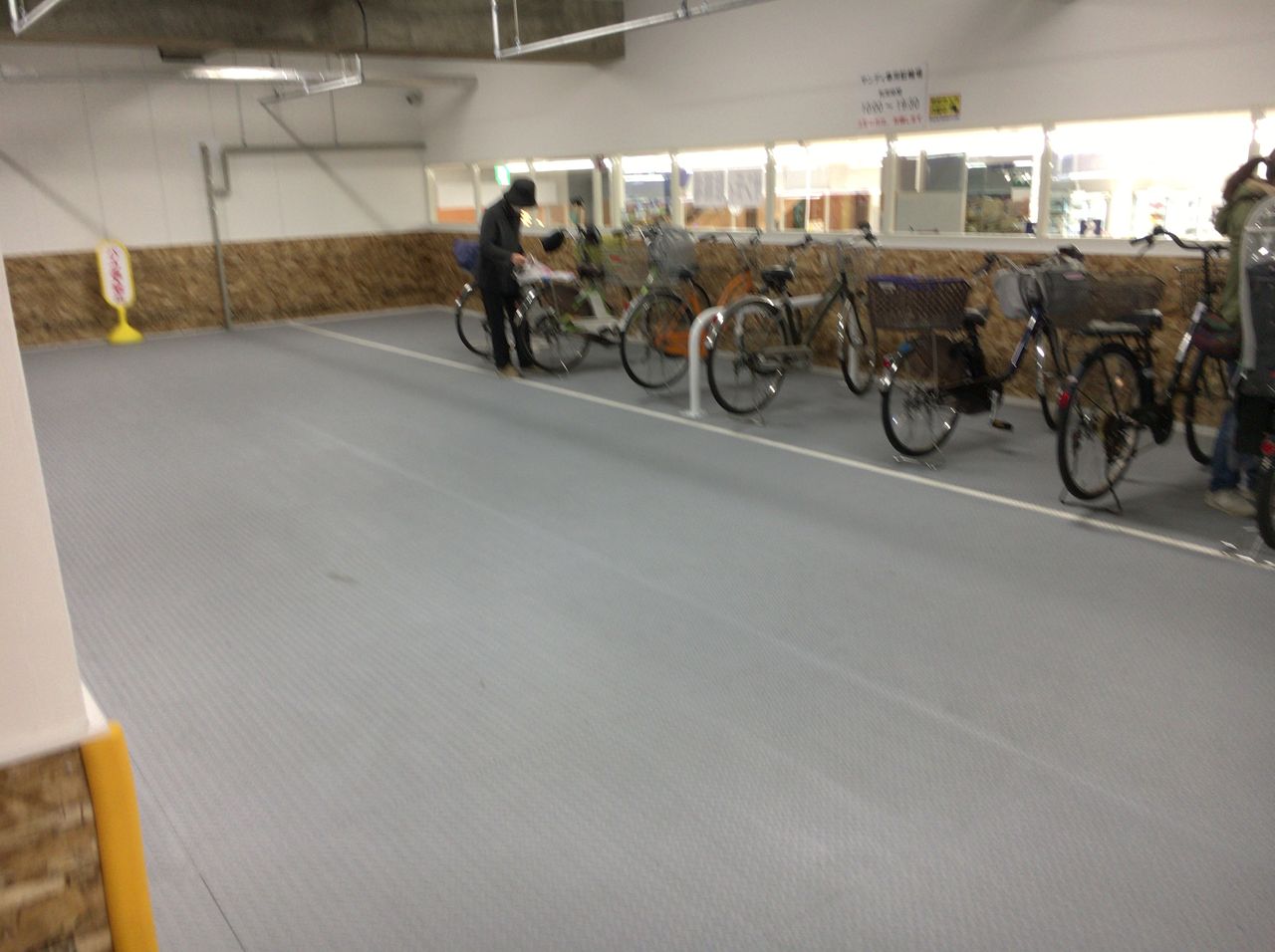 こちらがサンディ入り口。街の人の導線を調査した結果なのか、屋内に自転車置き場がしっかりと作られている。