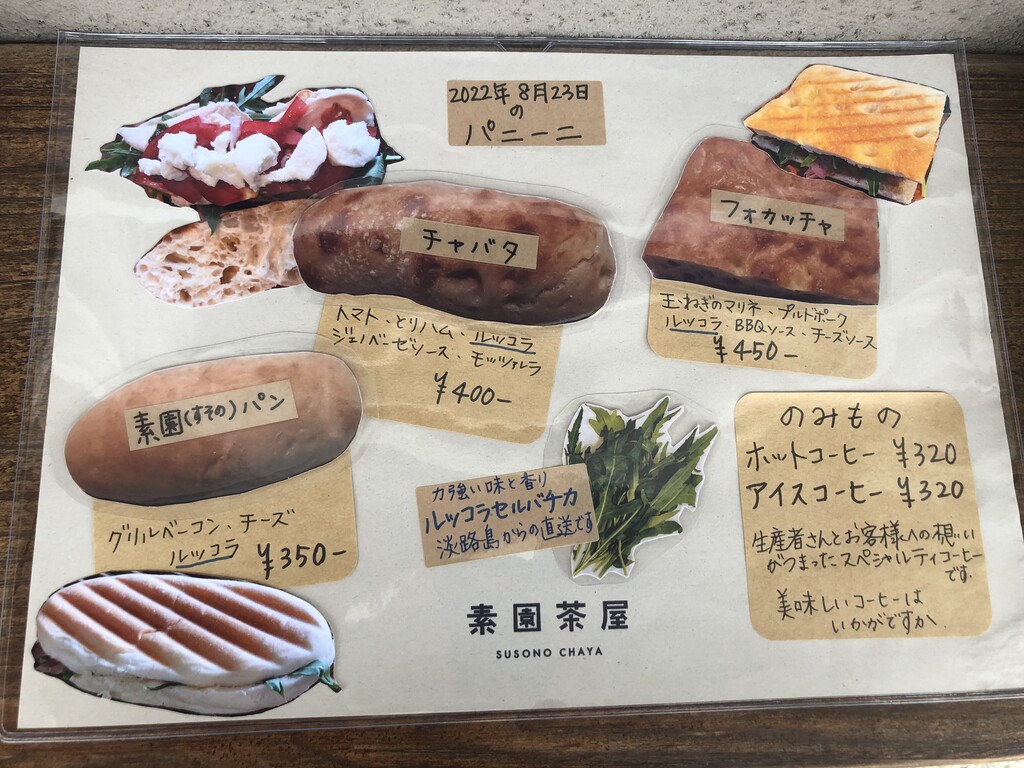メニューには「8月23日のパニーニ」と書いてあるので、その日によってメニューは変更されるのかもしれません。