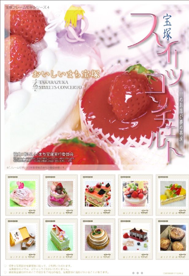 宝塚市内の有名店10店舗のスイーツが切手になり発売されている。