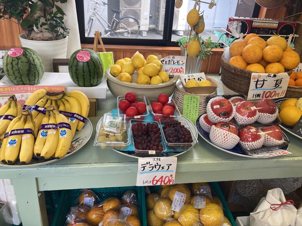 くし切りにして冷蔵庫にいれておけば、夏のビタミン補給にいいですよ~とのことで、美生柑を購入しました。コロナ禍で人と人とのコミュニケーションが減少しつつありますが、お店の方の優しさに触れ、とっても温かい気持ちになりました。